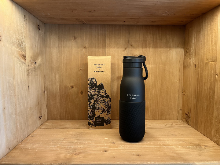 Unsere Berghuus x Fayren Isolierflasche ist dein perfekter Begleiter für unterwegs.